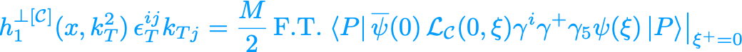The state |P> denotes a proton with a momentum P and the right hand side is the expectation value of a particular quark operator inside the proton. This quark operator is nonlocal and contains a Wilson line LC that makes it color gauge invariant. The Dirac structure projects out a specific quark polarization state (a helicity flip state or transversely polarized state). F.T. stands for a three-dimensional Fourier transform and C is a specific path of the Wilson line LC that depends on the process in a calculable and therefore predictable way. So the magnitude of the function is process dependent which leads to the natural question to ask: